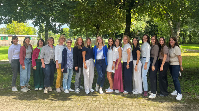 Unsere Lehrkräfte: v.l. Marion Balzian, Madeline Kühlbach, Simone Rudolf, Heike Riemer, Julia Bausenhardt, Elvira Rich-Armas, Petra Brevet, Vanessa Weigl, Cassandra Conreur, Katharina Lucas, Ann-Kathrin Müller, Silke Hansert, Sarah Dusenne, Rebecca Heli, Lara Gerloff, Diandra Herzog, Barbara Schlegel